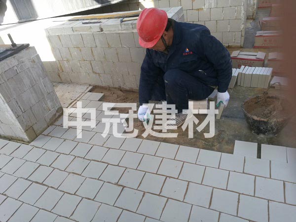 ④應在耐酸磚的施工面上打灰,中間應略高,不應在板面四周進行打灰.