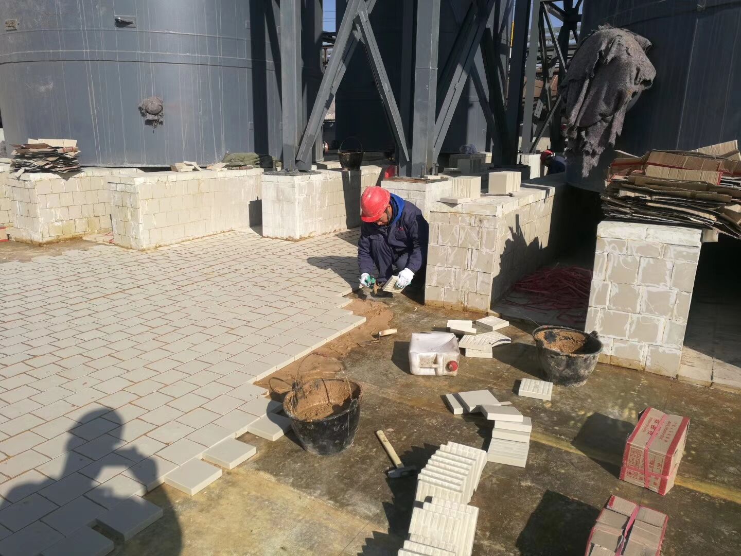 使用說明: 一般環(huán)氧樹脂,耐酸膠泥、耐酸水泥鋪貼,鋪貼時可根據(jù)上述生產(chǎn)廠家產(chǎn)品使用說明書進(jìn)行施工; 用草酸清洗混凝土表面,達(dá)到酸堿中和; 工業(yè)瓷耐酸磚,間縫寬度約8—10mm,間縫深度與磚厚相平為宜,以防泄露; 鋪貼完畢后應(yīng)用槽酸沖刷表面,以助于更加牢固。